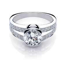 An engagement ring is a ring indicating that the person wearing it is engaged to be married, especially in Western cultures. In the United Kingdom, Ireland and North America, engagement rings are traditionally worn only by women, and rings can feature diamonds or other gemstones. In other cultures men and women wear matching rings. In some cultures, engagement rings are also used as wedding rings.Conventionally, the woman's ring is presented as a betrothal gift by a man to his prospective spouse while he proposes marriage or directly after she accepts his marriage proposal. It represents a formal agreement to future marriage.